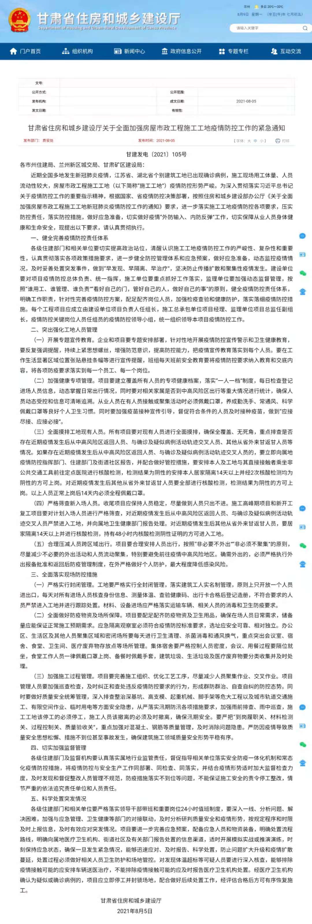 為深入貫徹落實(shí)習(xí)近平總書記關(guān)于疫情防控工作的重要指示精神,根據(jù)國家、省疫情防控決策部署,按照住房和城鄉(xiāng)建設(shè)部辦公廳《關(guān)于全面加強(qiáng)房屋市政工程施工工地新冠肺炎疫情防控工作的通知》要求,確保安全生產(chǎn)和正常施工生產(chǎn)秩序,現(xiàn)將《甘肅省住房和城鄉(xiāng)建設(shè)廳關(guān)于全面加強(qiáng)房屋市政工程施工工地疫情防控工作的緊急通知》轉(zhuǎn)發(fā)給你們,請各單位遵照執(zhí)行。