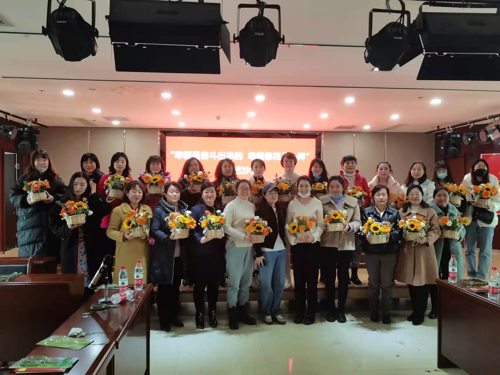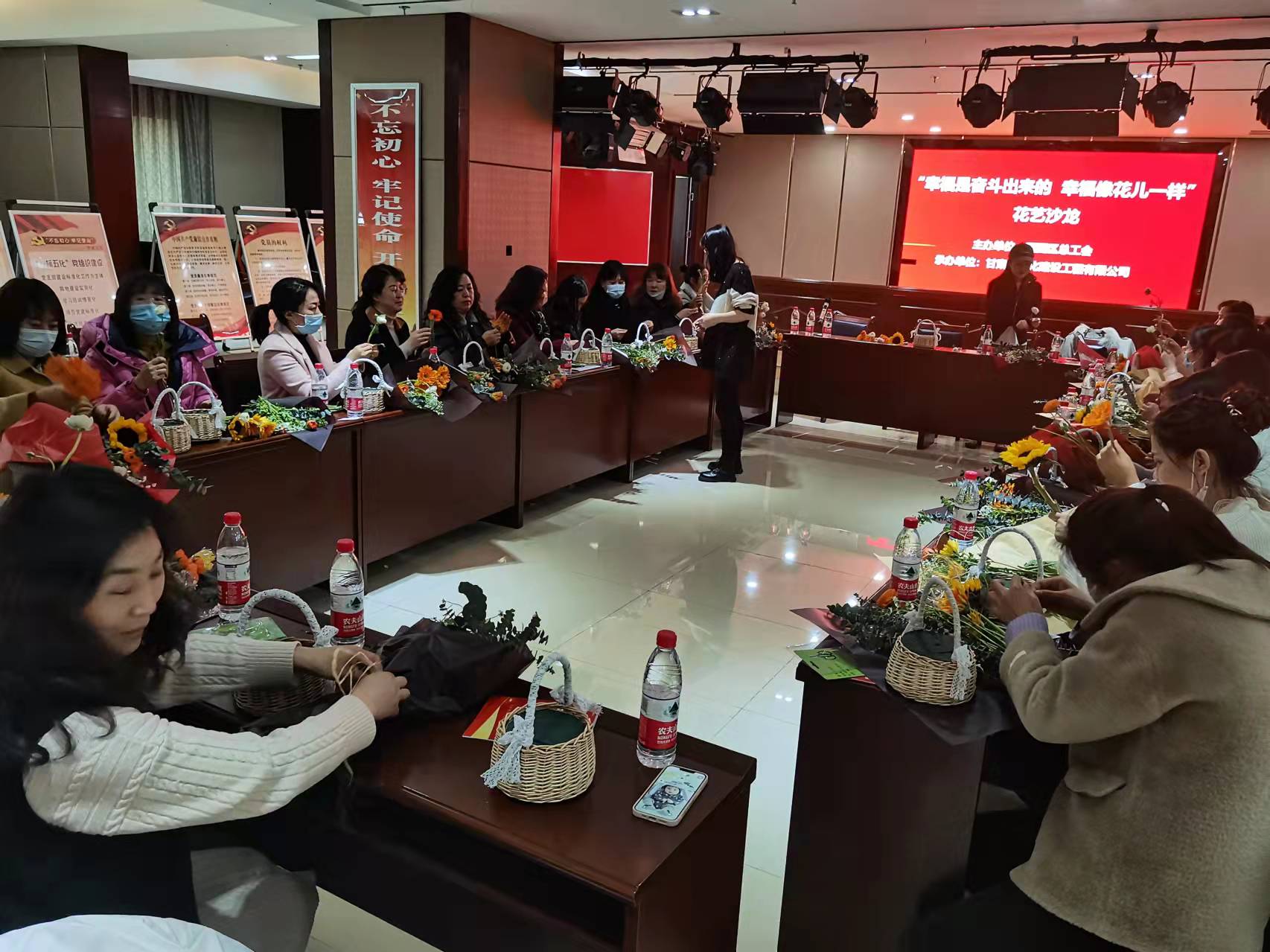 隨后舉行了“幸福是奮斗出來的,幸福像花一樣”花藝沙龍。員工憑借對美的不同理解,把原本普通的花草,經過修剪、層次搭配、點綴等步驟,變成了色彩斑斕、獨具匠心的花藝作品。